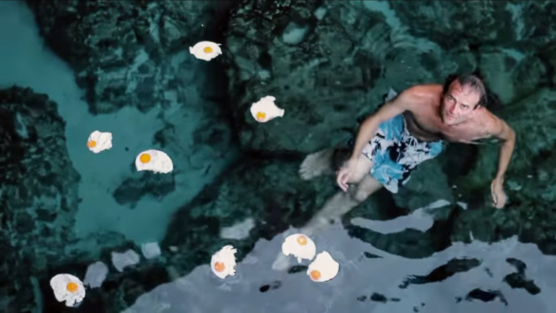 L’escena transcorre com difuminada per mor de les bellumes que provoquen la intensa calor i el reflex del sol damunt l’arena. Per l’horitzó, s’acosta amb una inquietant lentitud Neil Young amb els cabells descambuixats i colcant un cavall sense nom.