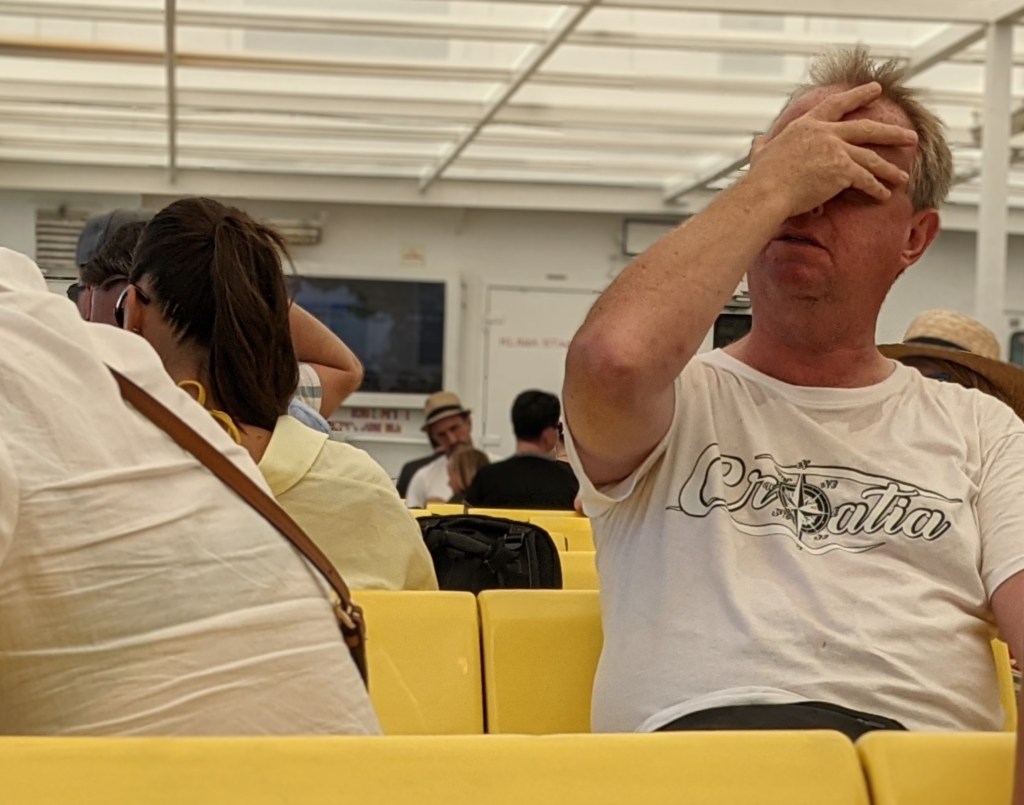 Cansat, acalorat i amb el gest inalterable Yuri Valic treu una pissarra al carrer Stradun que mostra una selecció de plats profundament autòctons de la cuina croata. Al menú no hi ha cap plat ultraprocessat, ni menjar fàcil d’empassar-se. Tots els plats han sigut escollits a partir d’una conscient reivindicació de la cuina tradicional croata. Al final del llistat, el menú es tanca amb un pictures not allowed in this café. Tot seguit, Yuri Valic, arreglat amb la camisa blava que el seu pare va lluir els divendres durant gairebé deu anys, s’asseu al tamboret de la barra del cafè Festival i observa com la totèmica presència del creuer MSC s’acosta per l’Adriàtic. L’arribada silenciosa del creuer contrasta amb la incontestable voluptuositat d’aquella nau. Entre la terrible homogeneïtat dels seus centenars de cabines amb balconet propi s’endevinen alguns turistes que comencen a fer fotografies de la ciutat. Yuri Valic, recorda els viatges amb el Yugo del seu pare i la nostàlgia se li dibuixa en les seves grans celles mentre pensa que, com el creuer que s’acosta, els grans canvis poden arribar també de manera silenciosa però inexorable i irrefrenable. Sense que un hi pugui fer molt.